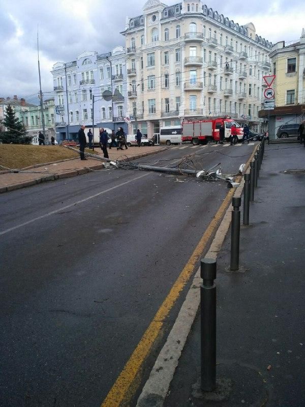 Позже выяснилось, что хвойное дерево упало возле первого подъезда, через который на работу заезжает спикер Рады Андрей Парубий.