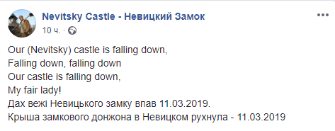 "Сообщаем – все, крыша упала в ночь с 10 на 11.03.2019", - отмечается на странице замка.