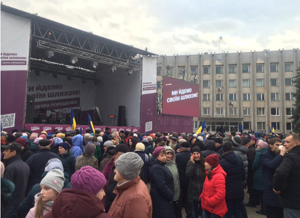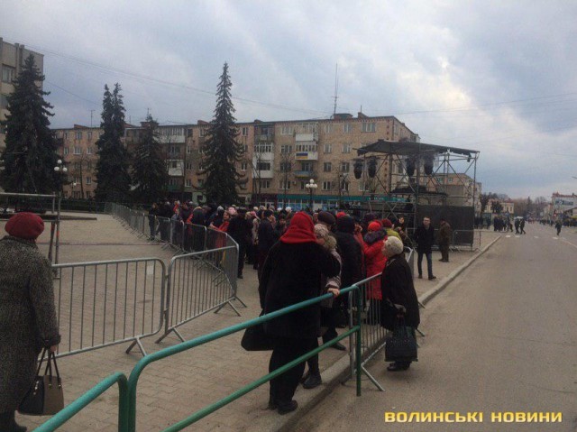 16:15 В то же время в Ковель прибывают фирменные бусы "Порошенко-тур. Людей свозят на концерт.