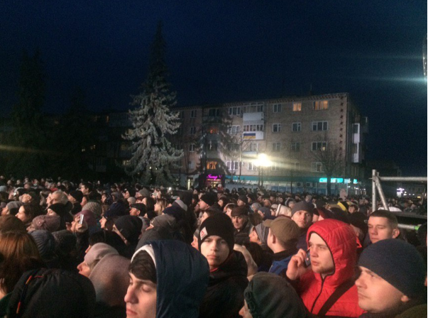 19:01 В Ковеле стемнело. Люди продолжают ждать приезда президента. На сцену поднялись люди из его команды, которые агитируют за Петра Порошенко.