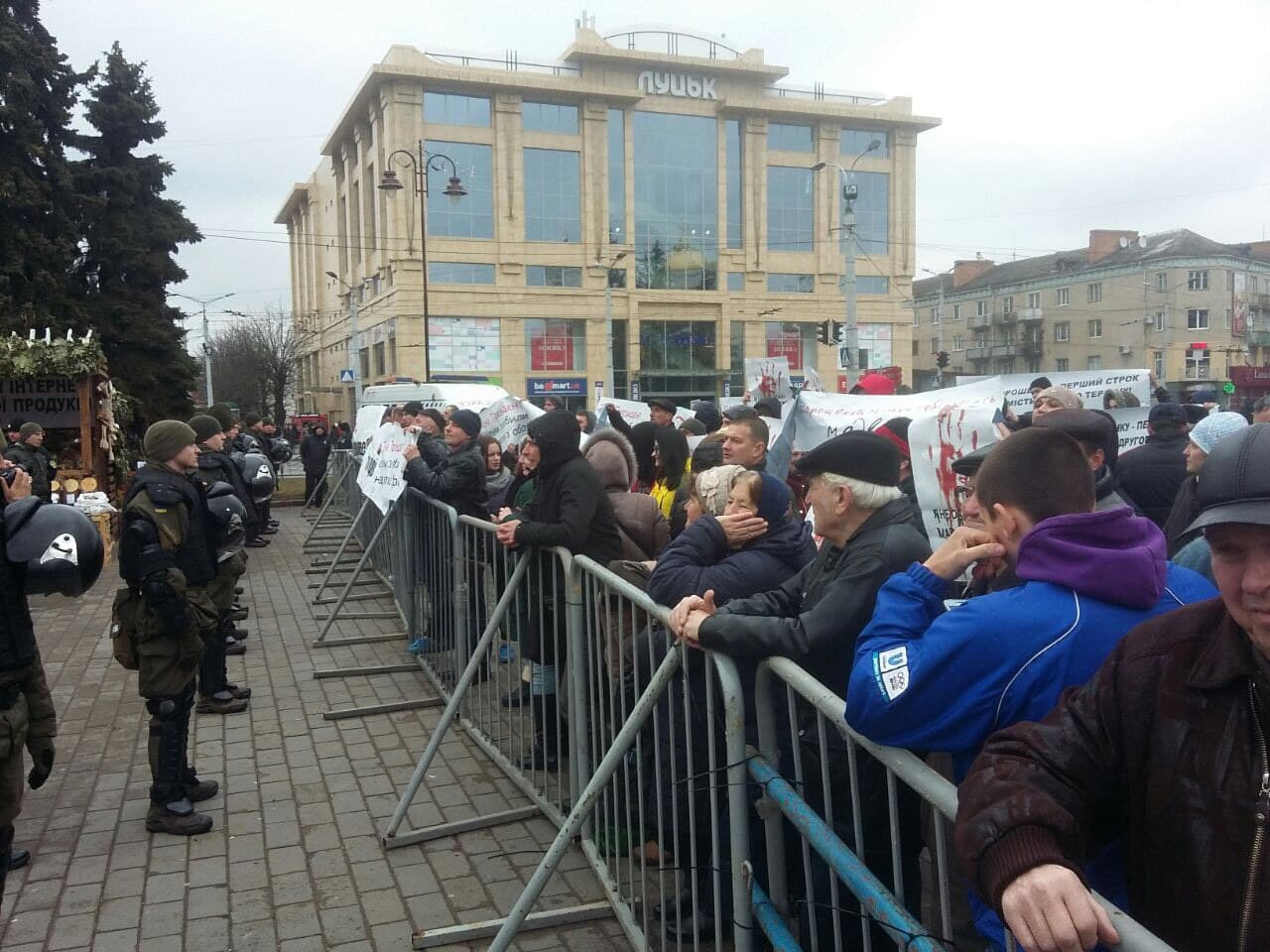 В Житомире он впервые поставил между собой и народом железный забор. А в Чернигове к паркану добавил сотни полицейских и тяжелый пропускной режим.