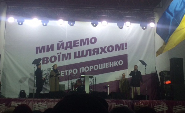 19:08 На экране в Ковеле транслируют запись с форума "От Крут до Брюсселя. Мы идем своим путем", на котором 29 января Петр Порошенко выдвинул себя в президенты.