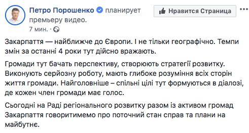 Одновременно на Facebook президента появился и сразу исчез пост о его визите в Закарпатье.