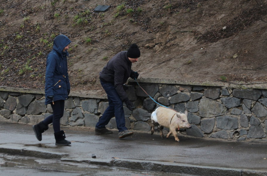 13:15 Троллинг президента в столице Волыни идет полным ходом. Кроме "Пети" на улицах Луцка появился еще один "свинарчук" - размером побольше. Его водят по улицам на привязи. Животное при этом громко хрюкает и визжит.