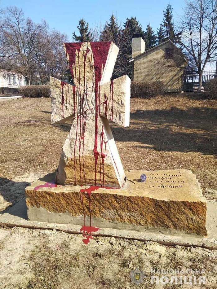 Под Харьковом облили красной краской памятник-крест участникам АТО. Фото