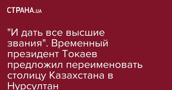 Касым-Жомарт Токаев, который после отставки экс-президента Казахстана Нурсултана Назарбаева занял его место, предложил переименовать столицу Казахстана Астану в Нурсултан. Об этом пишет "Газета".