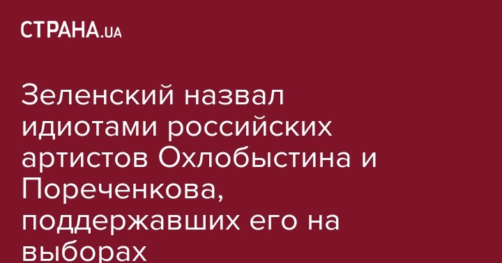 Зеленский назвал идиотами российских артистов Охлобыстина и Пореченкова, поддержавших его на выборах