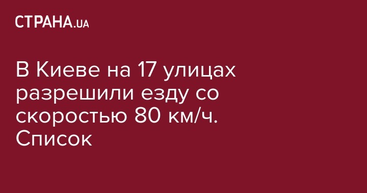 В Киеве с сегодняшнего дня на 17 улицах разрешили ездить со скоростью движения до 80 км/час. Автодороги должны быть приспособленными для более интенсивного трафика, потому что не имеют наземных пешеходных переходов и пересечений транспортных потоков в одном уровне. Такое решение принял Киевский городской совет еще в октябре прошлого года.