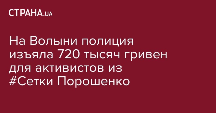 На Волыни полиция изъяла 720 тысяч гривен для активистов из #Сетки Порошенко