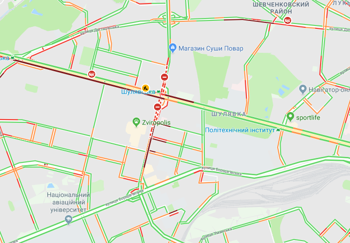 Перекрытие дорог спровоцировано ремонтными работами и авариями, фото: google.com/maps