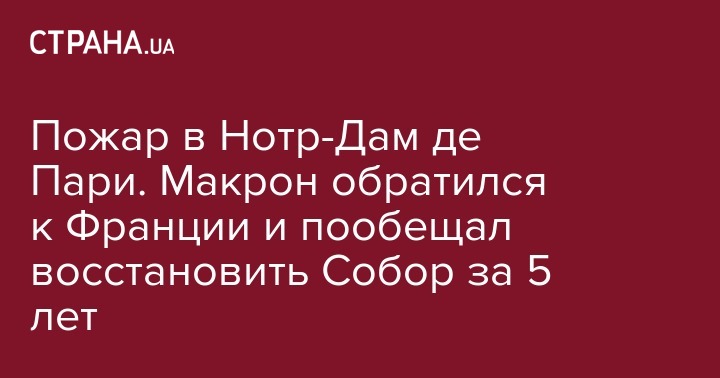 "Мы - народ созидателей и нам многое предстоит реконструировать. Да, мы восстановим Нотр-Дам де Пари и сделаем этот Собор еще красивее. И я хочу, чтобы эти работы были завершены через пять лет", - сказал французский президент. - Мы способны это сделать. И мы мобилизуем на это все силы, как и в других областях".