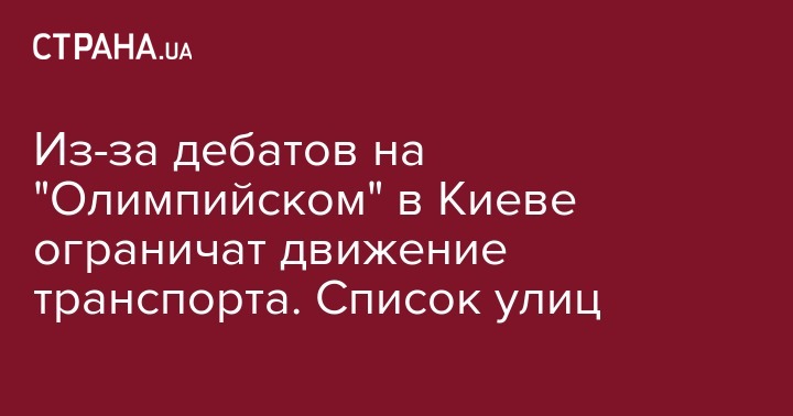 Из-за дебатов на "Олимпийском" в Киеве ограничат движение транспорта. Список улиц