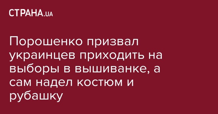 Несмотря на то, что президент Украины Петро Порошенко через соцсети призывал украинцев в день второго тура выборов приходить голосовать в вышиванках, сам он этого не сделал. Действующий глава государства пришел на участок в традиционной для него одежде -  костюме и белой рубашке.