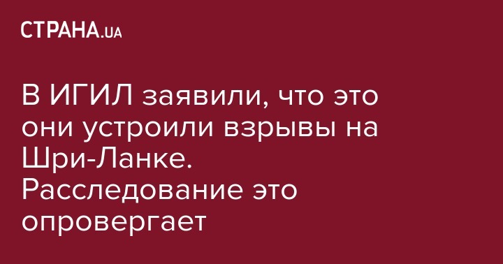 Террористы ИГИЛ взяли ответственность за серию взрывов на Шри-Ланке, которая произошла в воскресенье, 21 апреля. Об этом передает Reuters со ссылкой на заявление террористов.