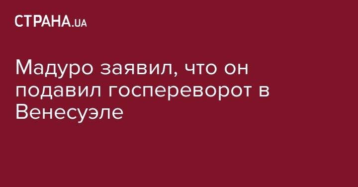 Президент Венесуэлы Николас Мадуро заявил, что власти удалось подавить бунт, который поднял лидер оппозиции Хуан Гуайдо 30 апреля. Об этом речь идет в его видеообращении, размещенном в Twitter.