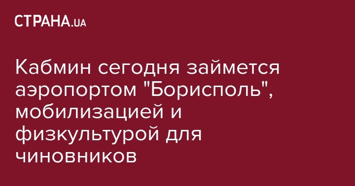 Кабмин утвердит проведение физкультурно-спортивных мероприятий среди чиновников и концепцию развития международного аэропорта "Борисполь" на период до 2045 года. Также в повестке дня заседания - проект распоряжения о подписании соглашения с правительством Доминики об отмене визовых требований.