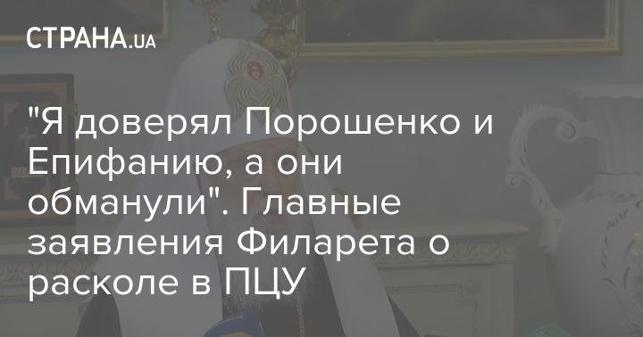 Указанные соглашения, сказал Филарет, были устными: "Мы не подписывали, потому что я доверял Порошенко и Епифанию, а они обманули".