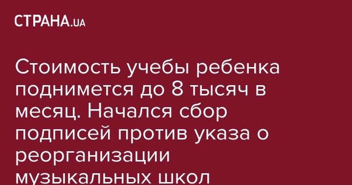 Согласно указа, эти учебные заведения должны перейти на самоокупаемость. Педагоги обеспокоены тем, что это приведет к повышению оплаты, которую вносят ученики за занятия. Если сейчас обучение в музыкальной школе ежемесячно обходится родителям в 200-300 грн, то после реорганизации эта сумма может катастрофически вырасти - до 3-8 тысяч грн в месяц.