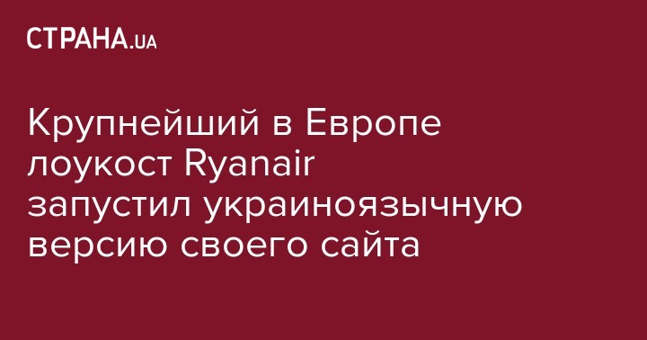 Крупнейший в Европе лоукост Ryanair запустил украиноязычную версию своего сайта