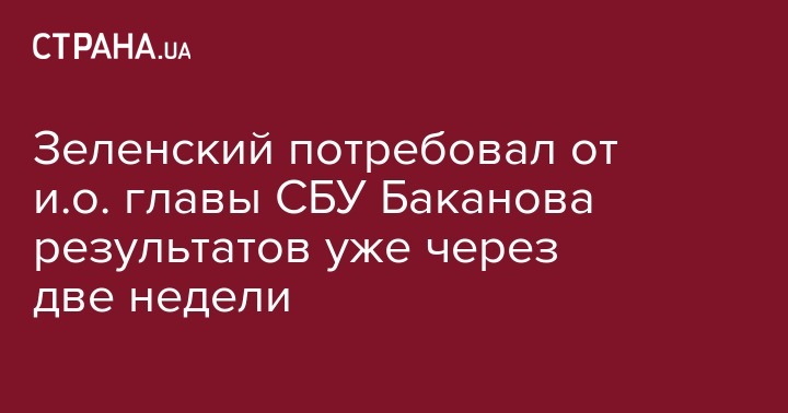 Президент Украины Владимир Зеленский требует от СБУ в течение двух недель продемонстрировать первые результаты работы. Об этом глава государства заявил во время встречи с временно исполняющим обязанности председателя Службы безопасности Украины Иваном Бакановым, пишет сайт президента.