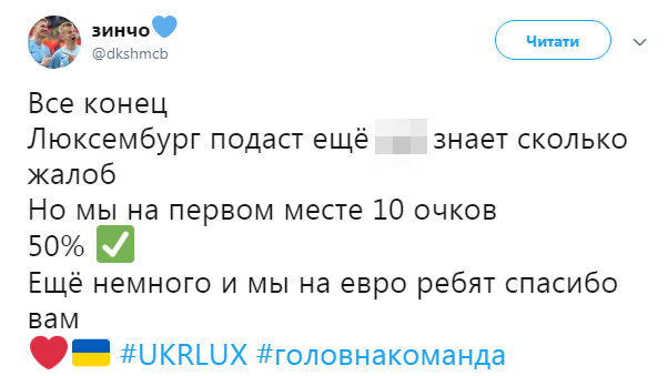 7 июня сборная Украины разгромила команду Сербии в отборе к Евро-2020. После этой победы Украина возглавила свою группу с 7 очками, добытыми в трех матчах. У Люксембурга – 4 очка после трех туров. У Португалии 2 очка - после двух игр. Литва и Сербия набрали в двух играх по 1 очку.