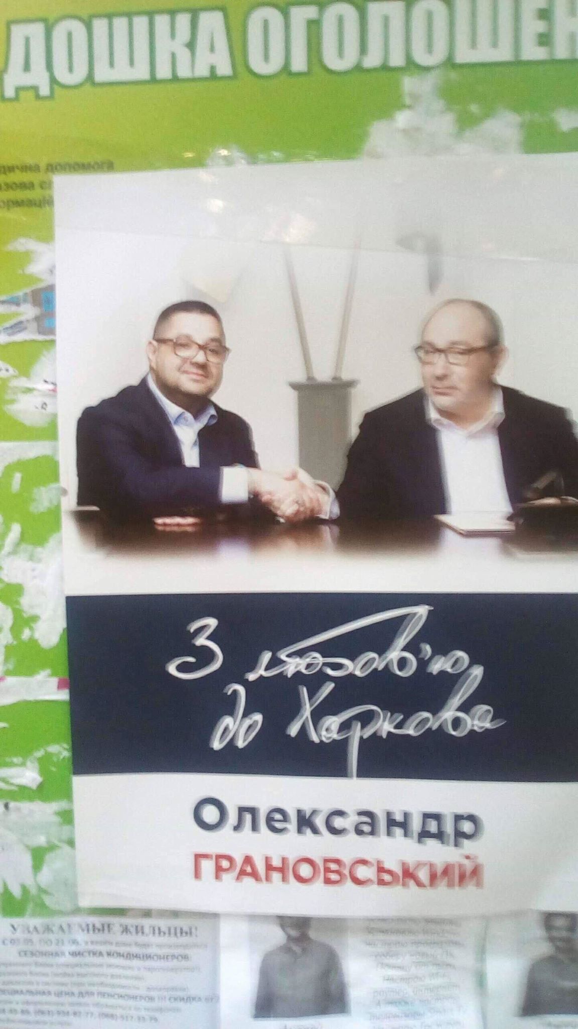 Накануне выборов в Харькове появились листовки соратника экс-президента Порошенко Александра Грановского. На них он пожимает руку мэру города Геннадию Кернесу.