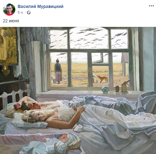 Так, журналист Василий Муравницкий опубликовал у себя на странице в Facebook картину Валентина Папко "Даже не снилось. 22 июня 1941".