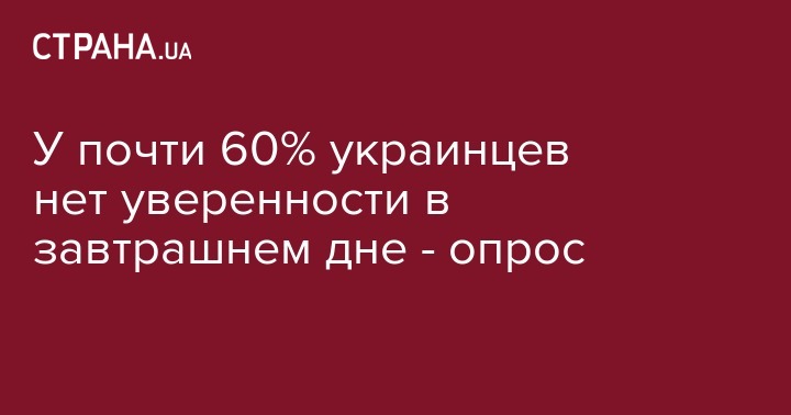 У 58% взрослых украинцев отсутствует уверенность в завтрашнем дне, в то время, как у 42% опрошенных такая уверенность все-таки есть. Об этом свидетельствуют данные опроса компании Research & Branding Group, пишет "Корреспондент".