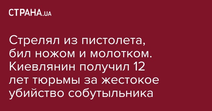 К 12 годам лишения свободы суд приговорил 23-летнего киевлянина, который четырежды выстрелил в своего товарища, а затем добивал его ножом и молотком. Об этом сообщается на сайте столичной прокуратуры.