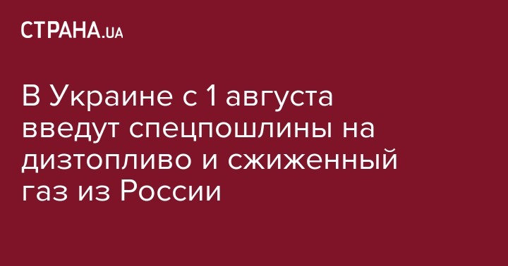 В Украине с 1 августа введут спецпошлины на дизтопливо и сжиженный газ из России