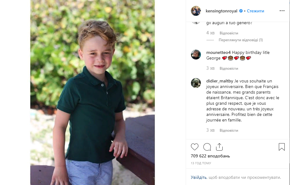 Представители Кенсингтонского дворца обнародовали на своих официальных страницах в соцсетях новые снимки подросшего сына Кейт и принца Уильяма - Джорджа.
