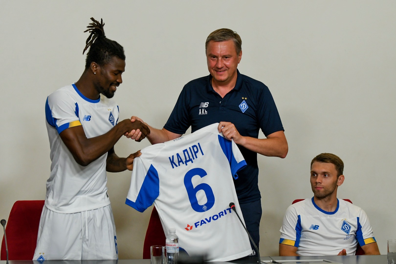 В пятницу, 26 июля, главный тренер киевского "Динамо" Александр Хацкевич представил журналистам новобранцев столичного клуба - хавбека сборной Украины Александра Караваева и ганского защитника Мохаммеда Кадири.