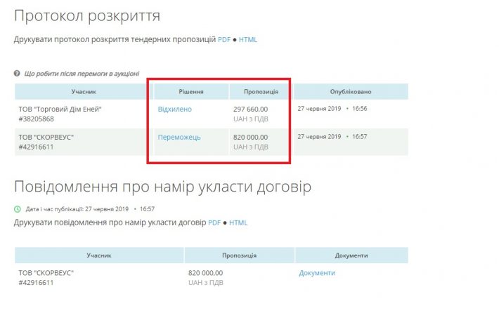 Во втором тендере на закупку льняных вышитых полотенец победила фирма, которая указана производителем продукции в первом тендере - ООО "ТК-Домашний Текстиль" с ценой 711 000 гривен за 200 полотенец (по 3,6 тысячи за штуку).
