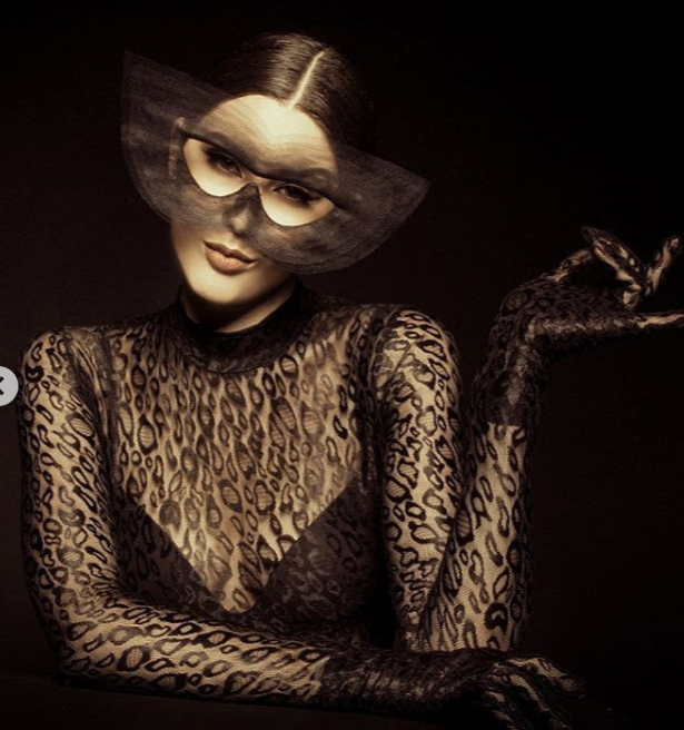Снимки появились на странице певицы в Instagram.  Maruv позирует в прозрачном топе с ажурным леопардовым принтом, через который просвечивается ее грудь. Лицо певицы прикрывает маска.