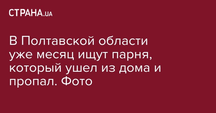 В Полтавской области больше месяца разыскивают парня, который ушел из дома и пропал. Об этом сообщает отдел коммуникации ГУ НП в области.
