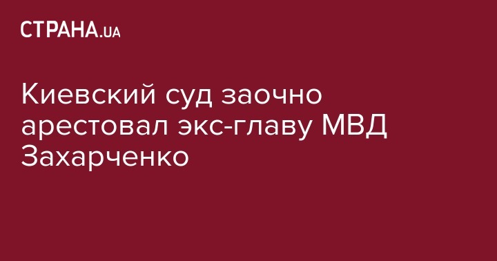 В четверг, 15 августа, Печерский суд Киева постановил заочно арестовать экс-министра внутренних дел Украины Виталия Захарченко. Об этом со ссылкой на решение суда пишет "Интерфакс-Украина".