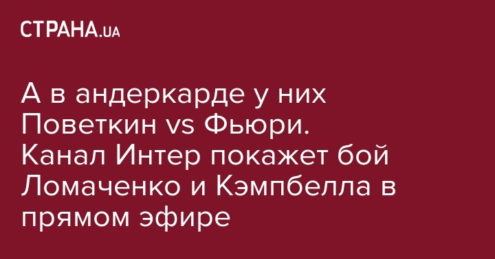 А в андеркарде у них Поветкин vs Фьюри. Канал Интер покажет бой Ломаченко и Кэмпбелла в прямом эфире