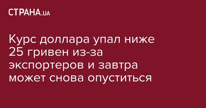 По его оценкам, поддержку сегодняшнему тренду оказал и наличный рынок. В течение дня в банковских обменниках американская валюта подешевела на 10 копеек. В среднем людям доллар продают по 25,05-25,15 грн./$. Хотя минимальный ценник опустился до 25,01 грн./$. Выкупают валюту у населения по 24,80-24,90 грн./$.