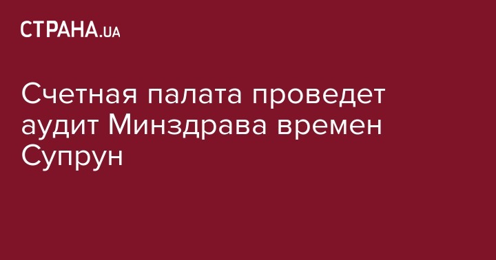Счетная палата проведет проверку деятельности Министерства охраны здоровья за 2016-2019 годы, когда ведомство возглавлял Уляна Супрун. Об этом сообщила сама Супрун в Facebook