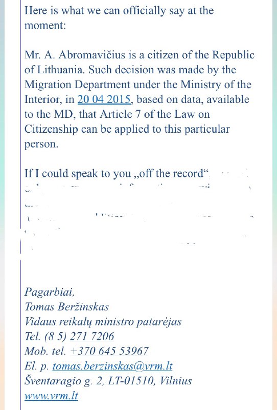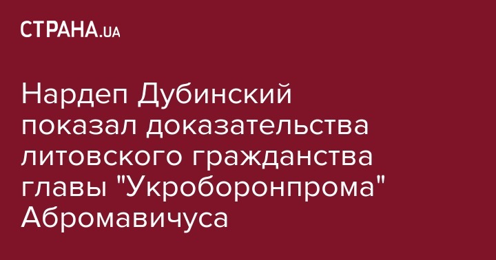 У генерального директора "Укроборонпрома" Айвараса Абромавичуса - литовское гражданство. Об этом в своем телеграм-канале заявил народный депутат Александр Дубинский, ссылаясь на официальное подтверждение от Министерства внутренних дел Литвы.