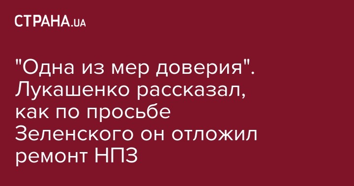 По его словам, он попросил руководство НПЗ перенести ремонт, что и было сделано. Лукашенко добавил, что Беларусь сделала все, "чтобы Украина получила необходимые ей нефтепродукты". По словам президента Беларуси, это была "одна из мер доверия".