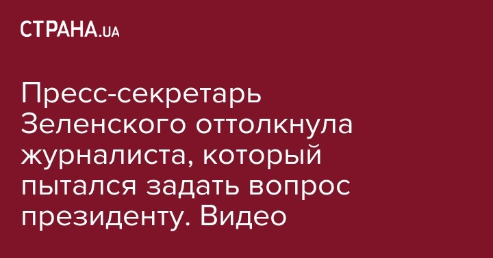Пресс-секретарь Зеленского оттолкнула журналиста, который пытался задать вопрос президенту. Видео