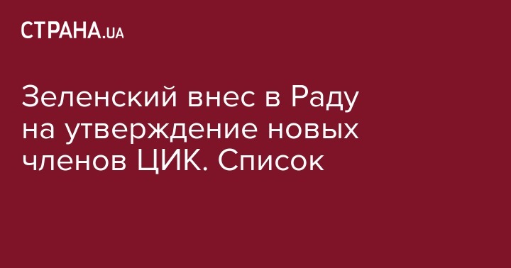 Президент Украины Владимир Зеленский внес в Верховную Раду новый состав Центральной избирательной комиссии. Об этом сообщает на своем Facebook народный депутат Алексей Гончаренко.