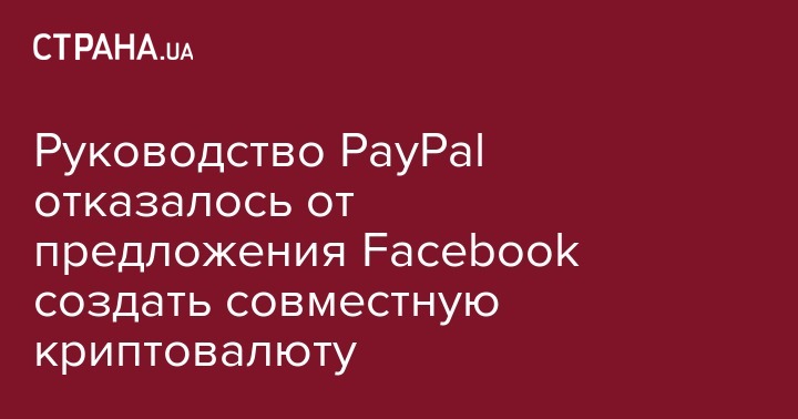 Руководство международной платежной системы PayPal заявило, что не будет вместе с компанией Facebook создавать криптовалюту Libra. Об этом сообщает Bloomberg.
