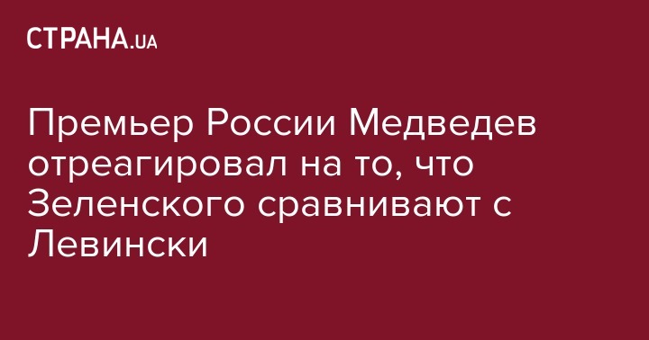 Премьер-министр России Дмитрий Медведев отреагировал на то, что американские журналисты сравнивают президента Украины Владимира Зелеского с участницей политического скандала, возникшего по поводу ее сексуальной связи с президентом США Биллом Клинтоном, Моникой Левински. Об этом сообщает РБК.