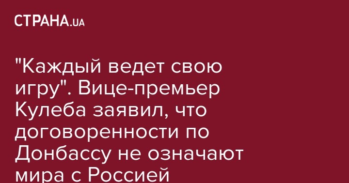 Реализацию договоренностей по урегулированию конфликта на юго-востоке Украины не стоит расценивать как установление мира с Россией. Такое заявление сделал вице-премьер по вопросам европейской и евроатлантической интеграции Дмитрий Кулеба, сообщает "Укринформ".