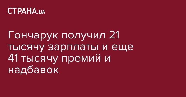 Сумма средств, начисленная Гончаруку в сентябре, составила 61 916 гривен, из них должностной оклад - 20 958 гривен, надбавка за интенсивность труда - 20 958 гривен, премия - 20 000 гривен.  Сумма удержанных налогов составила 12 073 гривны.