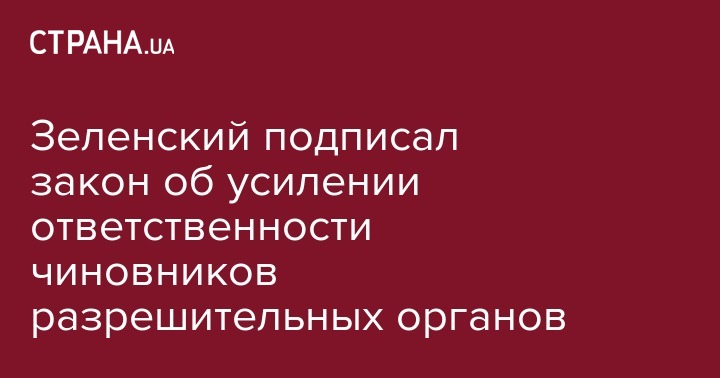 Зеленский подписал закон об усилении ответственности чиновников разрешительных органов