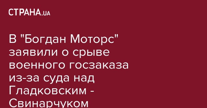Украинская компания "Богдан Моторс" заявила об угрозе срыва государственного оборонного заказа из-за уголовного преследования экс-первого заместителя секретаря СНБО Олега Гладковского.