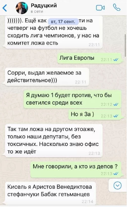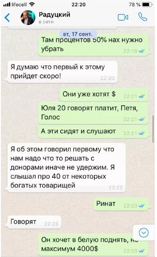 "17 сентября с Михаилом Радуцким обсуждали, что нужно платить депутатам зарплаты в конвертах.  Это было 17 сентября. А уже сегодня у нас есть доказательства, что депутаты "Слуги Народа" получают деньги в конвертах", - говорится в сообщении.